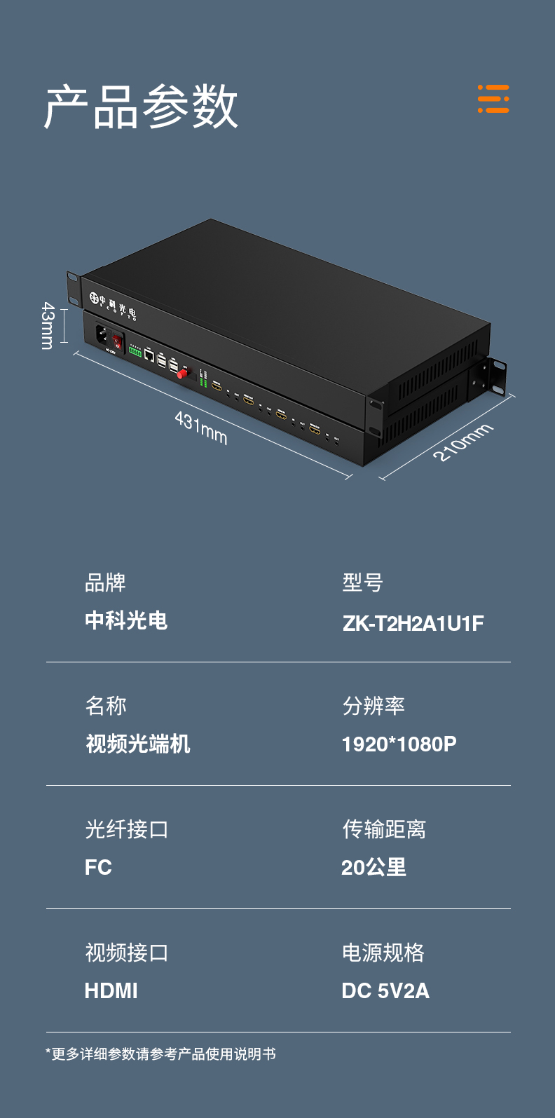 中科光電 高清2路雙向HDMI視頻光端機(jī)2路雙向音頻+1路USB+1路百兆網(wǎng)絡(luò)光纖延長(zhǎng)器無(wú)損傳輸收發(fā)器ZK-T2H2A1U1F