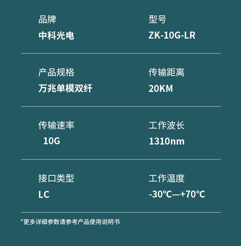 中科光電 萬兆光模塊 10G光纖模塊 萬兆單模光模塊 SFP+單模雙纖 1310nm,20KM,LC接口 一只 ZK-10G-LR