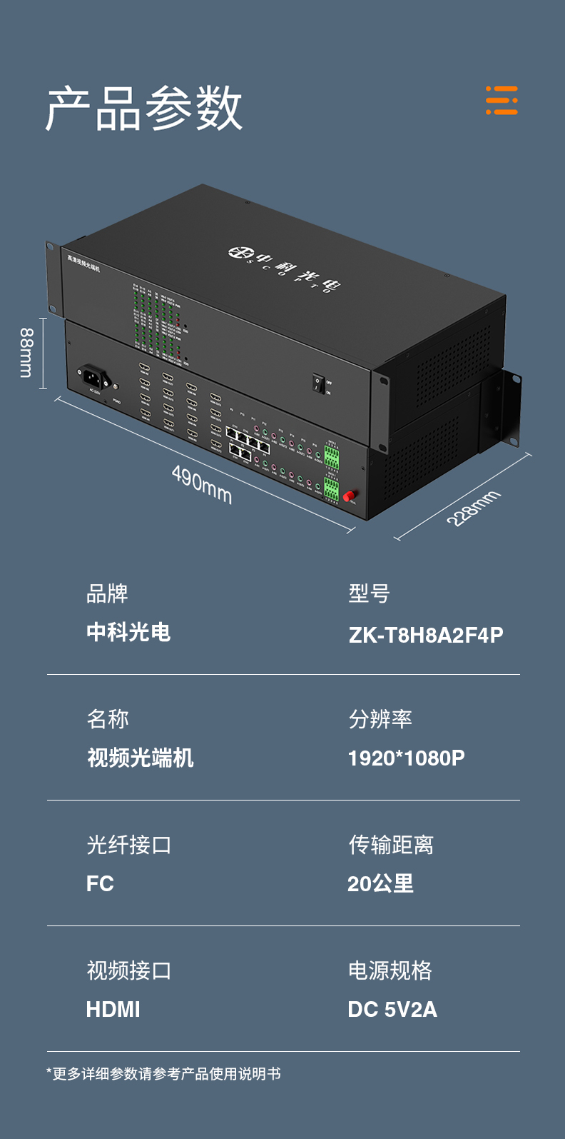中科光電 HDMI視頻光端機 8路雙向HDMI+8路雙向音頻+1路數(shù)據(jù)+2路百兆網絡+4路電話 ZK-T8H8A2F4P