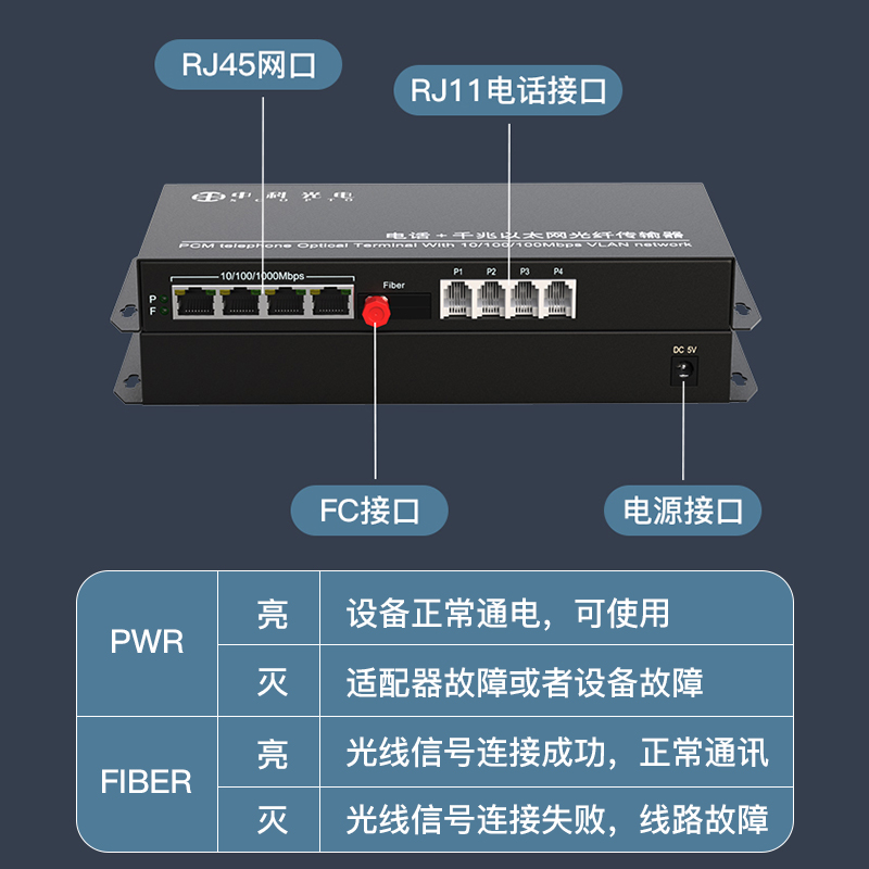 4路電話+4路百兆網(wǎng)絡(luò)物理隔離 FC接口