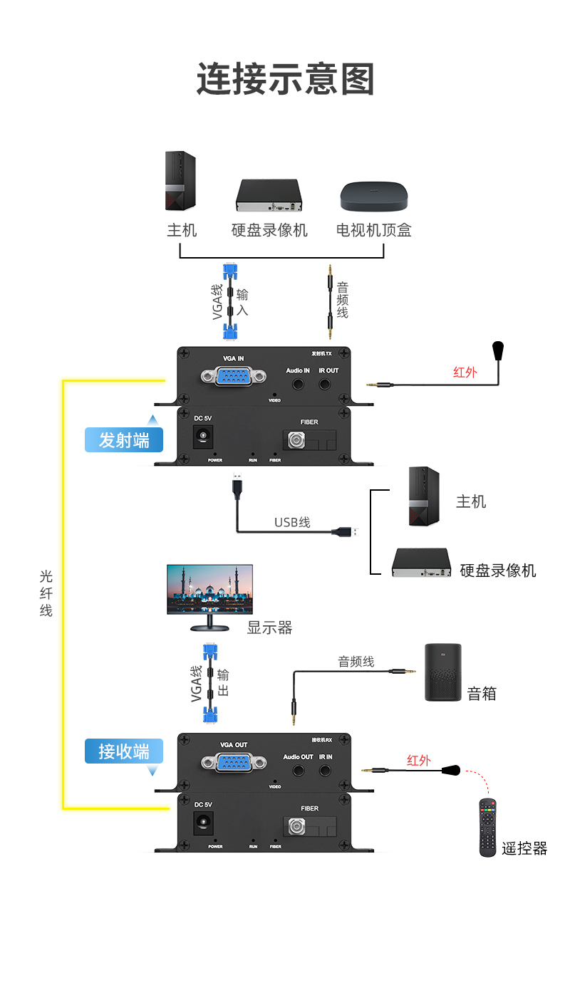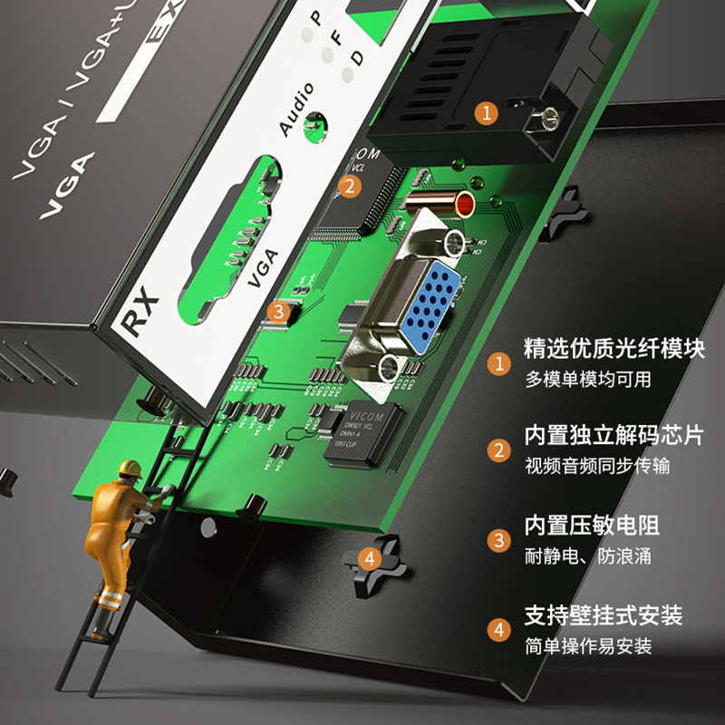 中科光電 VGA光端機 高清視頻光端機 VGA光纖延長器+獨立音頻 VGA轉光纖收發(fā)器信號放大器 ZK-VGA-AI/FC