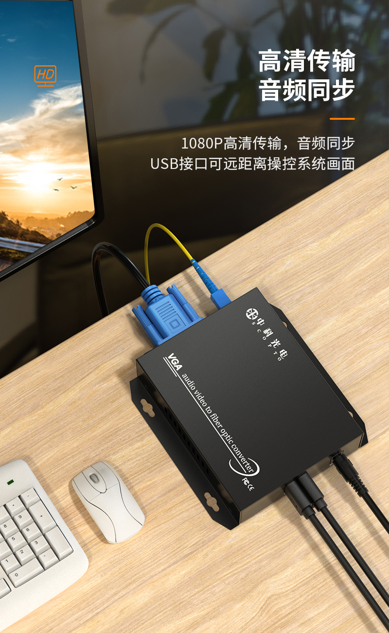中科光電 1路VGA高清視頻光端機(jī) 1路VGA+USB遠(yuǎn)程鍵鼠控制 VGA轉(zhuǎn)光纖延長轉(zhuǎn)換收發(fā)器 SC接口 ZK-VGA-U