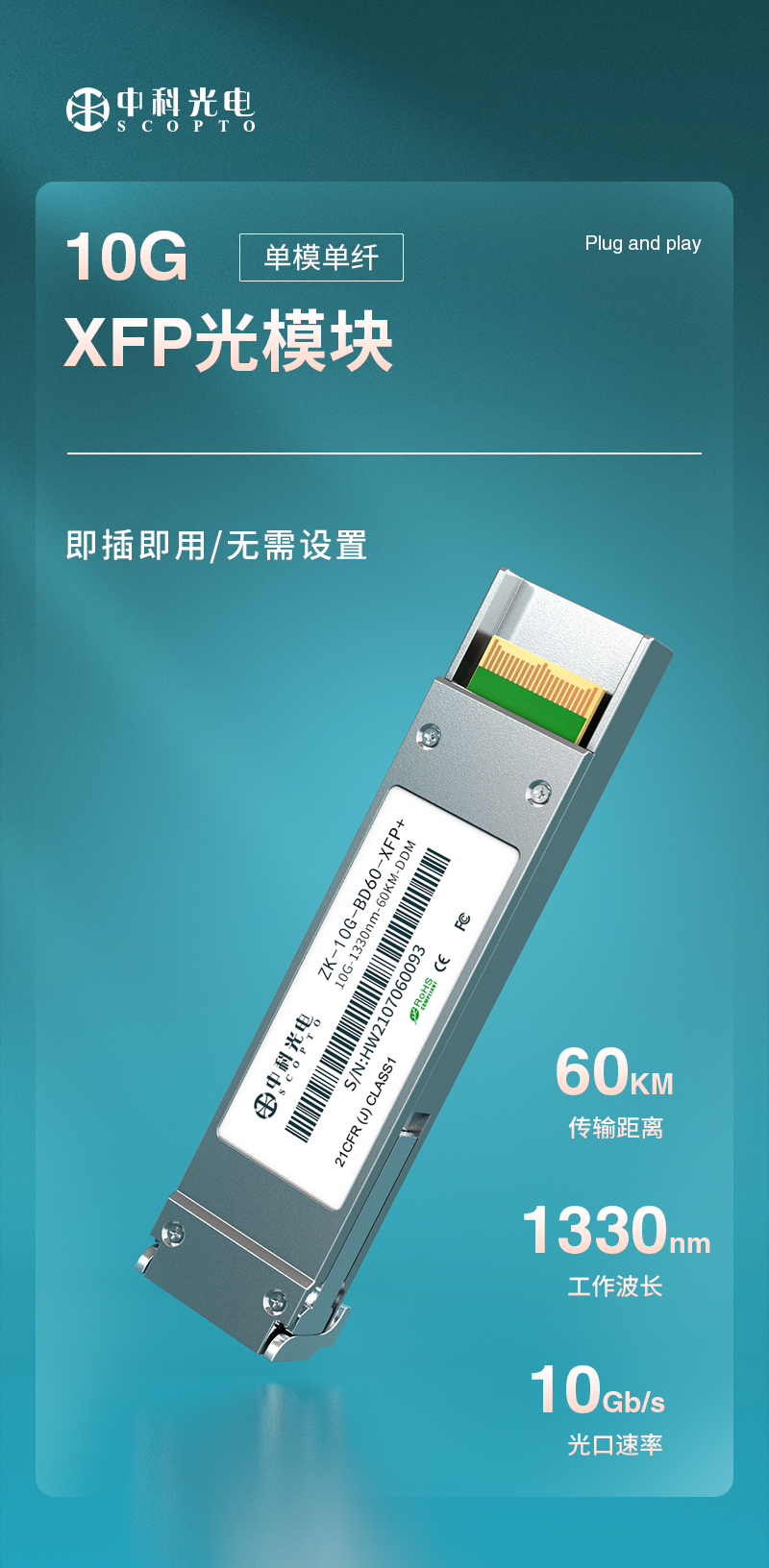 中科光電 XFP光纖模塊萬兆 10G單模單纖(1330nm,60KM,LC)適用各品牌華為華三H3C思科銳捷ZK-10G-BD60-XFP+