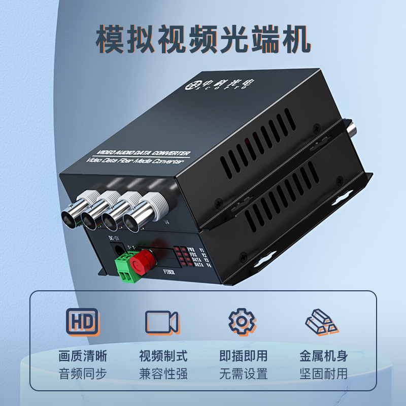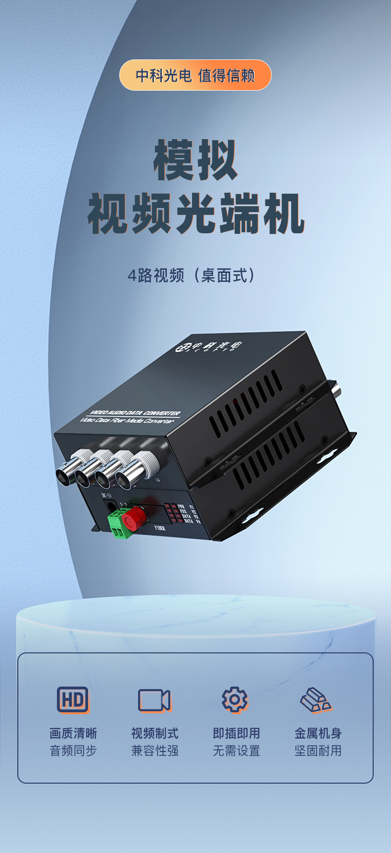 中科光電ZK-4V 模擬視頻光端機(jī)(桌面式)4路視頻 光纖收發(fā)器延長(zhǎng)器 單纖單模FC接口 1對(duì)
